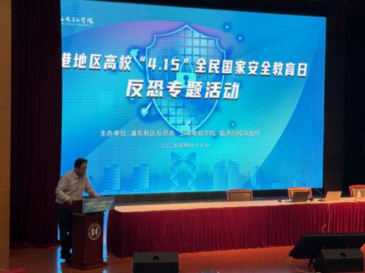4月17日,由浦东新区反恐办、上海电机公司与临港高校派出所联合主办的临港地区高校“4·15”全民国家安全教育日反恐专题活动在上海电机公司临港校区举行,tyc41183太阳成集团组织员工代表积极参与。