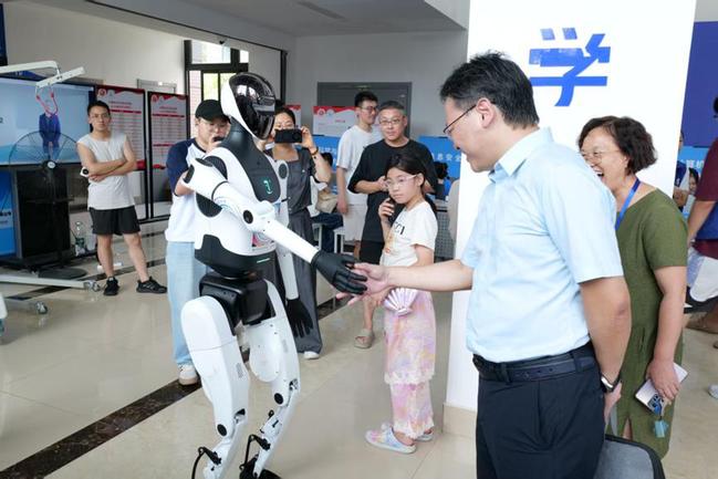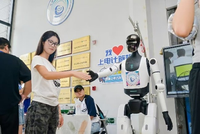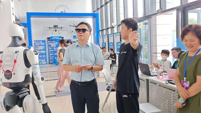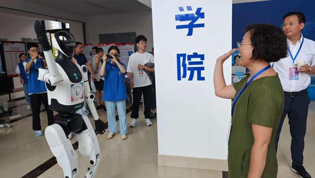 迎新现场开启“AI模式”,一位超炫酷的“新成员”,成为回头率最高的“志愿者”,该机器人可以完成握手、比心等互动动作,机器人化身“舞者”,拉满科技感;同时体验员工自主研发的VR眼镜,眼前“凤凰展翅欢迎2025级新生”的画面,现场纷纷互动体验,尽显公司专业特色与优势。