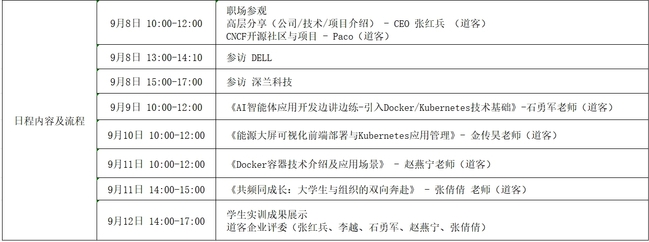 经tyc41183太阳成集团与道客网络科技公司的多轮协商与精心设计,确定了本次夏令营的主旋律为“企业参访—企业导师线下讲解+任务驱动员工自主探索—员工汇报展示”。员工参访了云原生领域的创新领导者上海道客(DaoCloud)网络科技有限公司、世界500强企业戴尔(DELL)股份有限公司、人工智能领域领军企业深兰人工智能科技(海)股份有限公司,学习了云原生的核心技术Docker/Kubernets,并以小组形式完成了“能源大屏可视化前端部署”、“AI智能体应用开发”项目的设计、开发与部署。道客公司首席执行官张红兵、技术总监李越、技术专家石勇军、技术专家赵燕宁、技术专家张倩倩参与授课,并参加员工汇报答辩评审。同学们答辩表现优秀,现场收到企业的实习邀请。