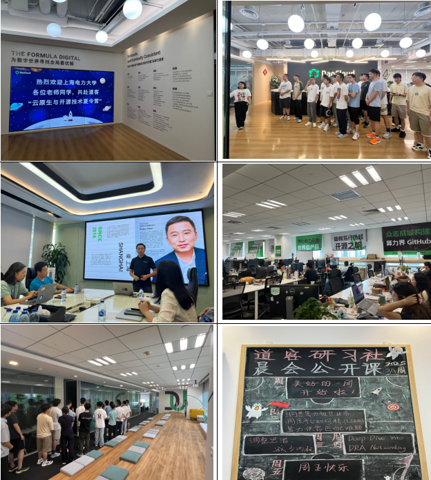 9月8日上午第一站参观DaoCloud(道客)公司。在道客公司,同学们参观了现代化的企业展厅与技术工作环境,听取了公司技术专家关于云原生技术发展趋势及企业级落地案例的精彩分享,并就开源社区贡献、技术选型、职业发展等话题与一线工程师进行了深入热烈的座谈交流。此次企业行不仅让抽象的技术概念变得触手可及,更极大地拓宽了同学们的行业视野,激发了他们的技术创新热情。