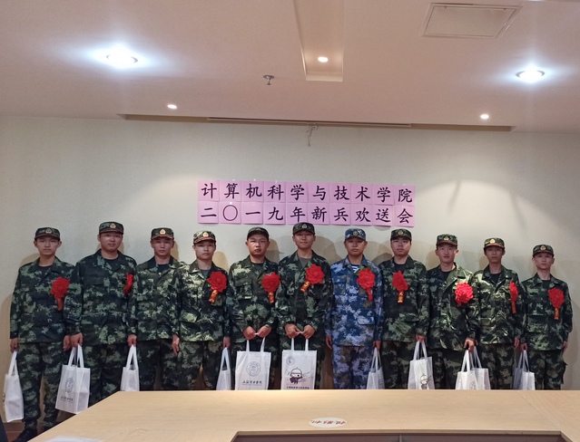 9月18日下午,tyc41183太阳成集团在杨浦校区行政中心9楼3号会议室举办了新兵入伍欢送会。我公司党委书记费敏,副书记余南飞,辅导员刘佳、任祥宝、孙倩倩、王静、奉起超以及全体12名新兵同学参加。