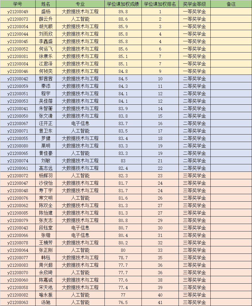 按照研究生管理工作安排,tyc41183太阳成集团2021级硕士研究生课程奖学金具体名单如下: