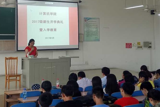 公司2017级新生开学典礼暨入学教育于9月4日在北2101教室隆重召开。经理温蜜老师,副经理毕忠勤老师,党委副书记余南飞老师,办公室主任诸葛琼老师,软件工程系主任周平老师,实验室中心主任徐媛老师,信息安全员工党支部书记吴涵老师,分团委负责人曹晓声老师出席了本次大会。大会由新生辅导员朱佳老师主持。