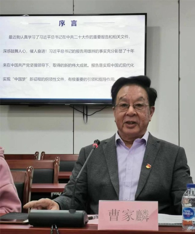 全国劳动模范、原公司董事长曹家麟教授以《敢于担当,放飞梦想》为主题为大家上了一堂生动的党课,他从自己学习党的二十大精神的感悟讲起,以身边的教授、教师、员工为例,娓娓道来为大家讲述了在今后的道路上如何成为一名自强自立、敢于担当的人,他以自己从教50多年的人生经历为例,鼓励大家在今后的工作岗位上要牢记初心使命,敢于拼搏、追求卓越,成为勇于担当的高质量人才;要继承上电优良传统,讲大道、勇承重、敢担当,成为具有家国情怀、渊博知识的高素质人才;要牢记习近平总书记对广大青年的殷切期待,成为奋发有为、开拓创新的高科技人才,希望同学们在新的岗位上抓住机遇,再创辉煌。