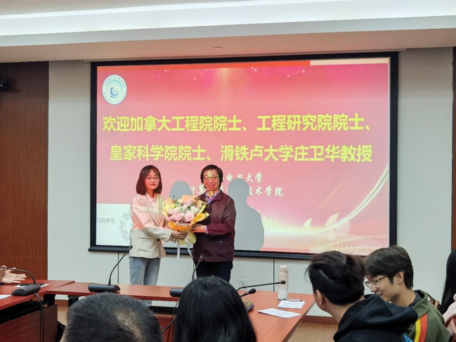 庄院士的报告丰富了师生们对智能物联网应用与前言研究问题的认识,交流环节的互动更是激发了师生们对边缘计算和深度神经网络推理问题的兴趣和思考。会后员工代表钱雨薇同学为庄院士献花并全体合影留念,感谢庄院士带来的精彩讲座。