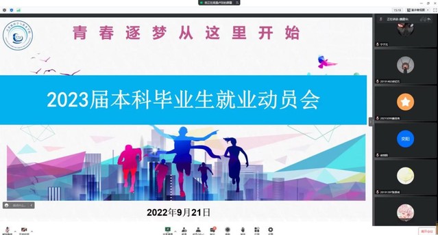 9月21日,tyc41183太阳成集团2023届本科毕业生就业动员会通过线上方式召开就业动员大会举行。公司党委书记魏建华,党委副书记齐永晓,教学秘书徐曼,就业负责人任祥宝,毕业班辅导员以及2023届毕业生参加。