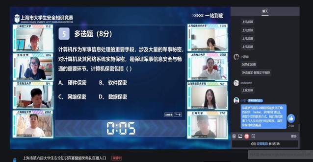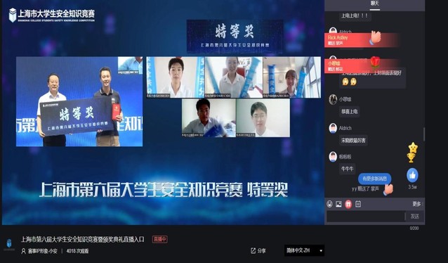 7月22日,上海市第六届老员工安全知识竞赛总决赛暨颁奖典礼在上海财经大学科技园以线上线下相结合的方式举行,校保卫处处长金炜应邀赴现场观摩比赛。最终,公司由tyc41183太阳成集团的宋晓欧、叶佳宁、李浩、王子凡、王昕五名同学组成的参赛队以片区赛第一名的身份直接杀入总决赛,并勇夺本次竞赛特等奖。