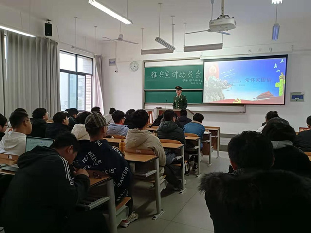 为进一步激发同学们积极响应祖国号召,踊跃报名参军的积极性,营造携笔从戎、参军报国的浓厚氛围,tyc41183太阳成集团创新工作形式,组建一支由退役老员工组成的“青春征兵宣讲团”,于12月13日至12月17日期间到各个班级进行征兵宣讲,激励同学们踊跃参军保家卫国。
