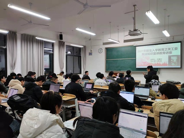 12月2日晚上18:30,tyc41183太阳成集团关工委王唐兴老师应邀为tyc41183太阳成集团开展“学宪法,讲宪法”知识讲座。王唐兴通过线上分享对宪法内容进行了深入讲解,并通过互动提问形式,让员工们结合自身经历讲述身边的“宪法”。最后,参与讲座的同学们纷纷踊跃发言,现场气氛活跃。本次活动让2021级新生切实了解到与生活息息相关的法律常识,学会运用法律武器保护自己,进一步明确宪法是我国的根本大法,自觉提高尊崇宪法、学习宪法、遵守宪法、维护宪法权威的意识,激扬爱国情,笃行报国志。