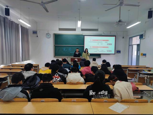 “学宪法,讲宪法”,公司将学讲宪法活动与党史教育相结合,通过班干部宣讲、员工交流、知识竞答以及员工宣誓等形式,开展以宪法为核心的法治宣传教育主题班会。2021年11月22日至今,公司共组织开展主题班会近30场,涵盖全院本科生800余人。在主题班会中,班级以爱国主义教育为重点,紧密结合历史文化,进一步普及宪法知识,并针对近期员工遭遇的诈骗案件,在法治宣传教育中增加了防诈骗普法宣传,意在提高员工的辨别能力。