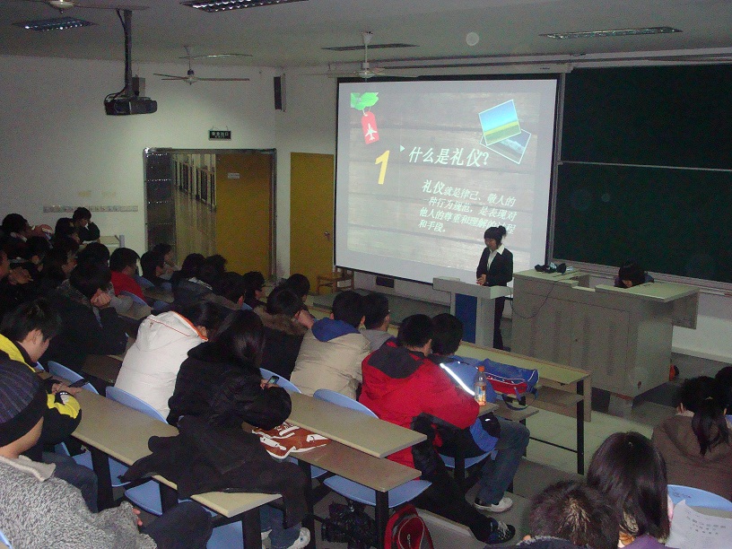 为增强大家对个人仪表及礼仪的认识,以此帮助大家做一个更加优秀的世博会志愿者,12月10日晚7点整,在南4121计信公司开展了迎世博文明礼仪讲座, 公司团总支书记成勇老师也出席了本次活动。