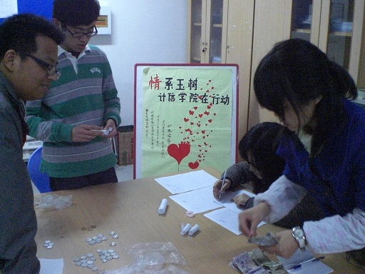 为支援广大玉树受灾同胞,近日公司在公司团学办公室举行了为青海玉树赈灾募捐,两天时间各团支部捐集善款6853元,募集的捐款将通过慈善机构转交给玉树灾区,为重建玉树献出一份微薄之力。通过此次活动,增强了同学们的民族凝聚力,也对同学们进行了一次全方面的教育,让同学们在灾难中学会珍惜,学会爱国,学会感恩,懂得责任!
