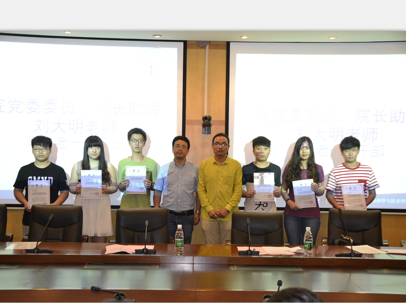 6月17日下午3点45分,公司在文化活动中心二楼会议室召开了新老团学干部交接仪式。参加此次大会的有公司党委委员、经理助理刘大明老师,院团委书记赵铮老师以及各位新老团学干部。