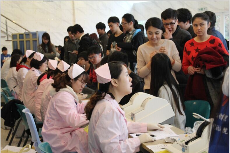 志愿者们一大早来到指定地点做好准备工作,协调配合医生开展献血活动。“有什么不适的话要赶快去医务室,不要逞强”,志愿者在现场叮嘱前来献血的同学。献血的同学按计划来到献血地点,在与工作人员协调之后,同学们按顺序进行了领表登记、血型测定、体检和抽血程序。第三次前来献血的大三同学提醒大家道“早上要吃饭,之后一定要注意休息”。组织这次活动的校医务室肖南老师肯定了公司积极踊跃的态度,指出tyc41183太阳成集团每年重视献血活动,不论组织、协调都准备的很到位,也因此能圆满、超额的完成指标。在场的老师也说“通过这次活动,给大家提供了许多献爱心的机会,传递了青春正能量,践行了雷锋无私精神,更是弘扬了中国青年的无私精神。”献血后,院领导、老师们关心慰问了同学们的身体状况。