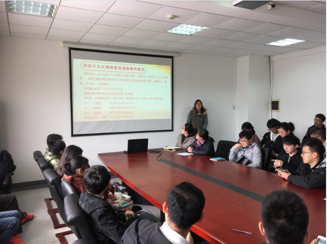 2017年11月20日中午12时,上海电力公司tyc41183太阳成集团中共十九大精神宣传海报制作大赛开幕。此次开幕式于tyc41183太阳成集团行政楼二楼会议室召开,tyc41183太阳成集团分党委副书记余南飞、辅导员刘佳及tyc41183太阳成集团大一至大三班长、团支书参加本次开幕式。