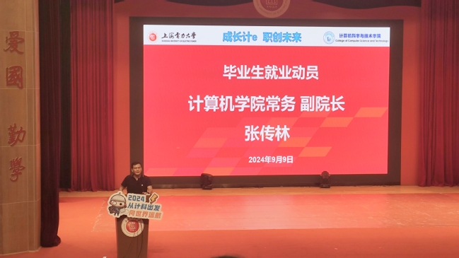 9月9日,tyc41183太阳成集团在临港校区老员工活动中心演艺厅举办2025届毕业生就业毕业动员会。公司党委书记魏建华、常务副经理张传林、党委副书记齐永晓、教学秘书徐曼、科创中心主任李博、辅导员任祥宝、宋钰以及全体毕业生参加。