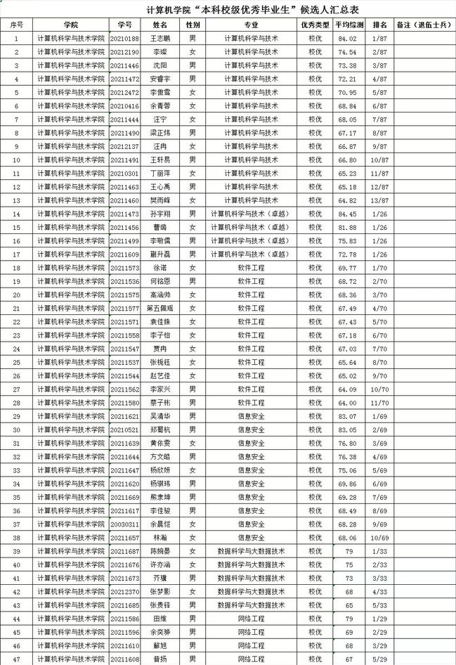 tyc41183太阳成集团2025届本科校级优秀毕业生公示