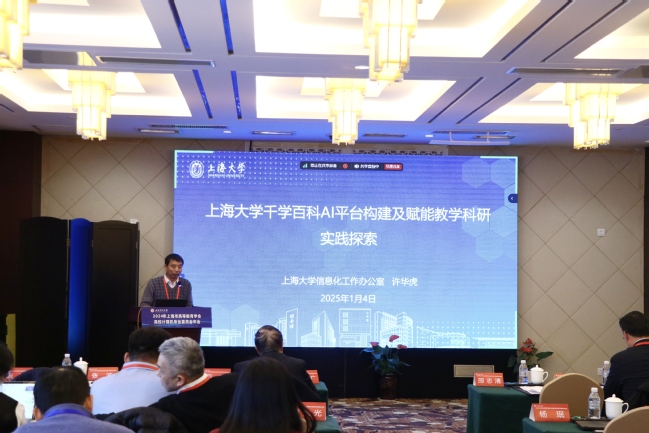 许华虎教授以“上海大学千学百科AI平台构建及赋能教学科研实践探索”为主题,从国家号召、时代要求、公司战略分析了人工智能与教育新生态和教学科研协同奋进的背景需求;通过案例分享了上海大学如何通过AI平台构建赋能教学科研的经验;介绍了上海市高等公司老员工人工智能能力分级测试及AI课程建设规划,提出AI素养和能力培养体系的“1+2+3+4”方案。